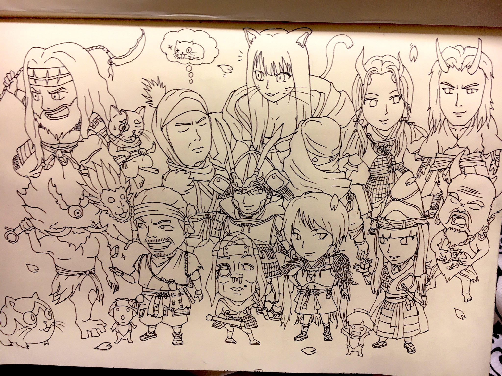 自分は仁王2から始めた人間ですが、めちゃくちゃ楽しんでおります! ストーリーも然り、各キャラクター、やり込み要素も満載で時間が溶けていくばかり笑 そんな仁王2から、個人的に好きなキャラクター達を描いてみました! 後は色も付けていきたいところ! #仁王シリーズ4周年 #仁王絵巻
