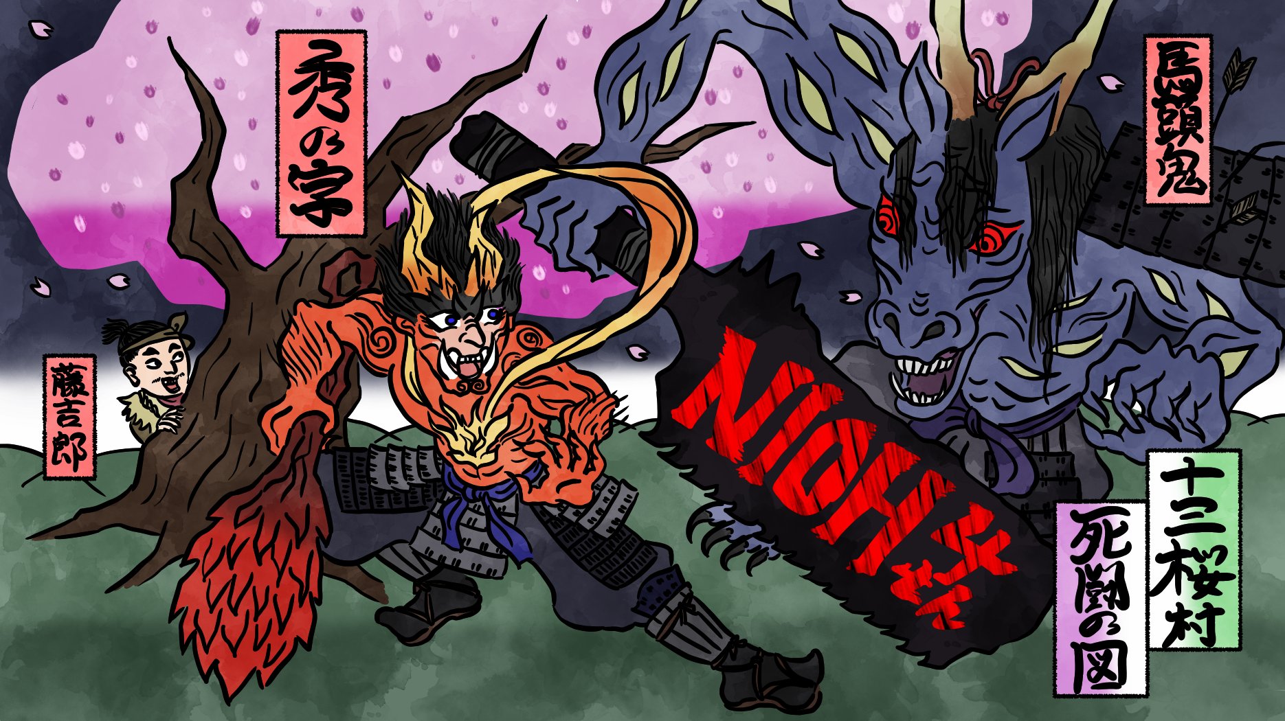 仁王シリーズ4周年おめでとうございます 私の人生初死にゲーが仁王2、最初の十三桜村の桜が美しかったこと、馬頭鬼まで到達するのに1日かかったこと、ラストシーンの桜に心震えたことを今でも鮮明に覚えています。3も期待し、まだまだ2で落命ライフ楽しみますよ #仁王絵巻 #仁王シリーズ4周年