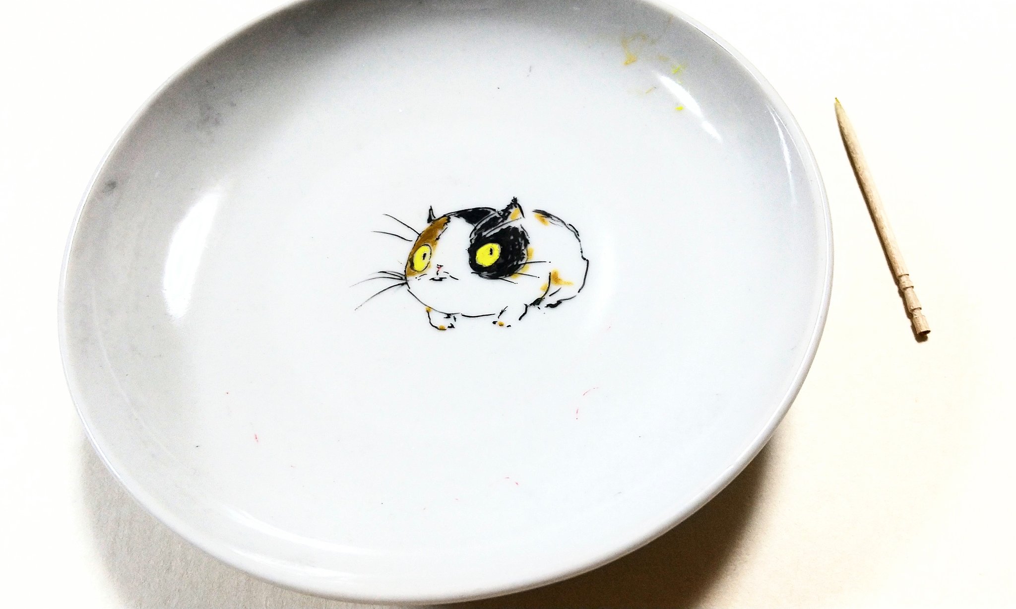 つまようじを使って、皿にすねこすりを呼び出しました (仁王シリーズ4周年おめでとうございます。『2』から始めた新参ですが、非常に楽しんでます!) #仁王絵巻 #仁王シリーズ4周年