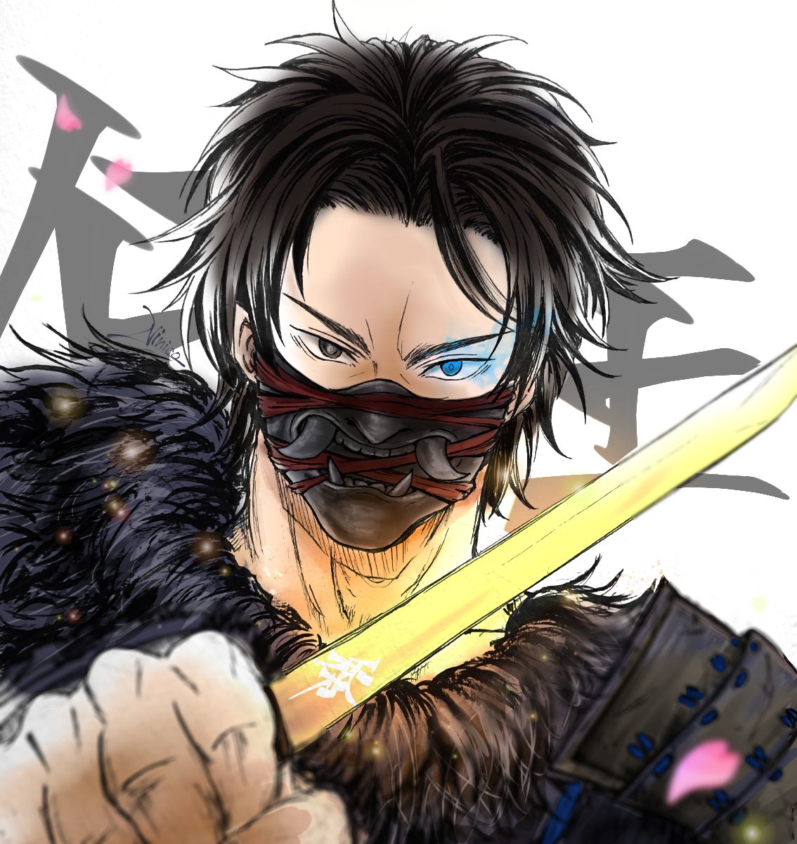仁王シリーズ4周年おめでとうございます!仁王2から始めて最初は苦労しましたが、アクションやシステムを覚えていくうちにどんどん爽快で楽しいゲームに変わっていきました。キャラメイクも素晴らしかったのでうちの秀の字を描きました。 #仁王絵巻 #仁王シリーズ4周年