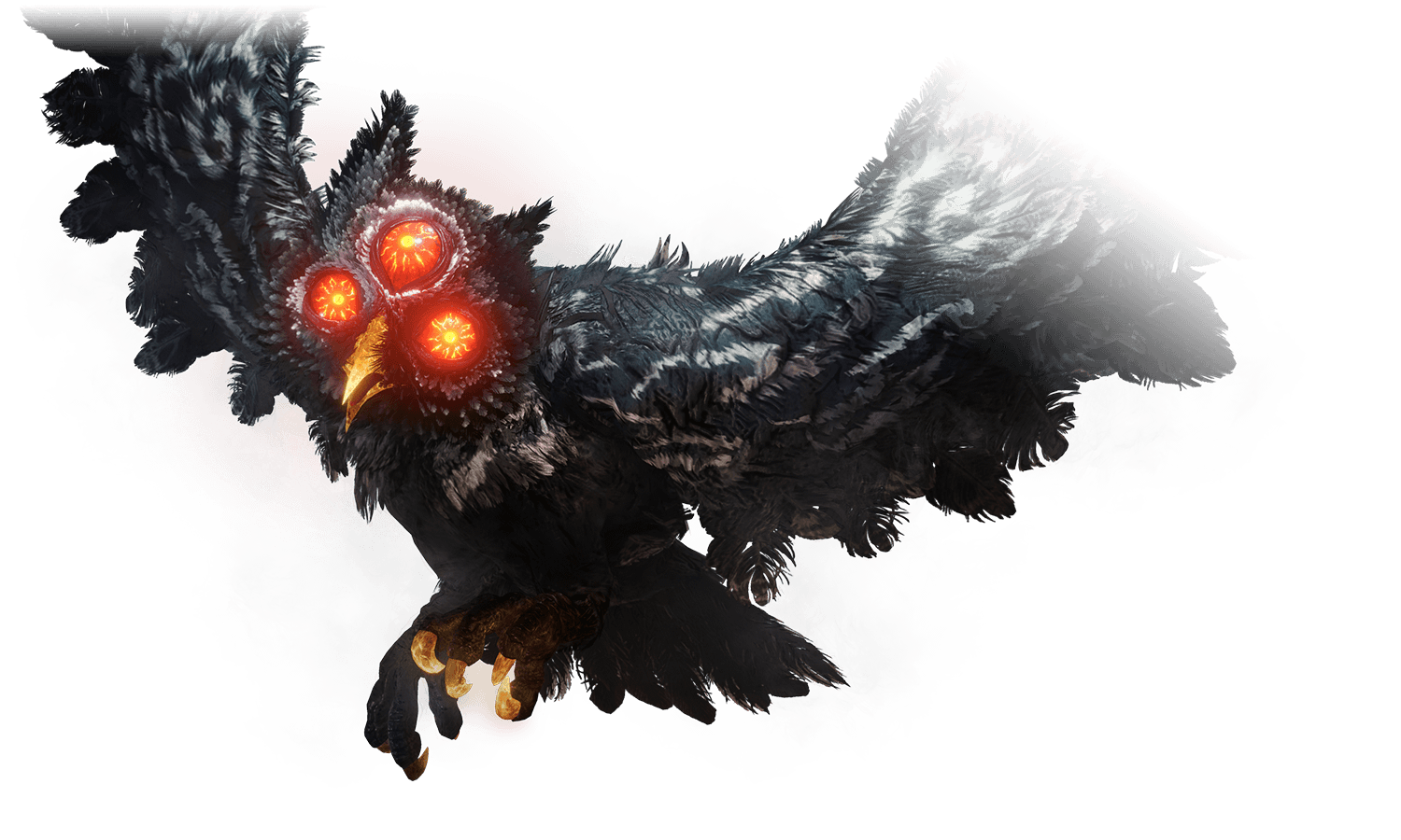 想いを残して死んだ霊が大量に寄り集まり、巨大なフクロウの姿をとった妖怪。 東北地方の伝承では、惨たらしい手口で殺された者が怨みを晴らすために祟りを為すことをたたりもっけという。別の伝承では、嬰児の死霊がフクロウに宿って祟りを為すことをたたりもっけと呼び、フクロウのホーホーという声は死んだ嬰児の泣き声であると信じられた。