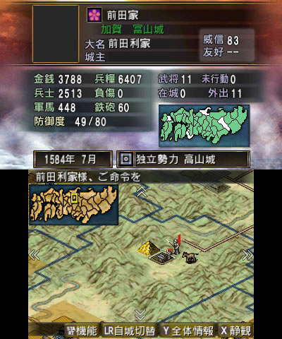 ある程度内政も済んだので、初の合戦を行います。目指すは富山城南の独立勢力の高山城です。