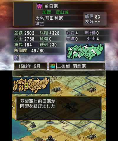 次なる目標である上杉家打倒に向け内政を始めるも、同盟国の柴田家が羽柴家によって滅ぼされてしまう。