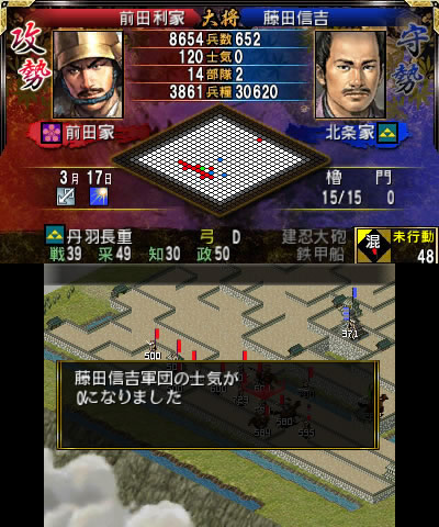 城攻めよりも城を守る部隊を中心に攻め、敵の士気を0にすることで落城に成功しました。