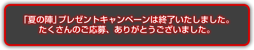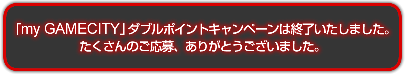| 応募方法 | 商品に同梱されている 「my GAMECITY」 ポイントサービスの案内に従って、 製品アンケートにお答えいただくと、自動的にキャンペーンにご応募いただいたことになります。 |