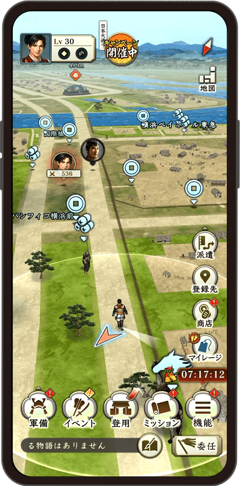 毎日の通勤通学で自分の領地を巡回し、さまざまな用兵指南を達成しましょう。
