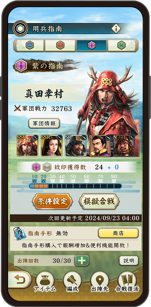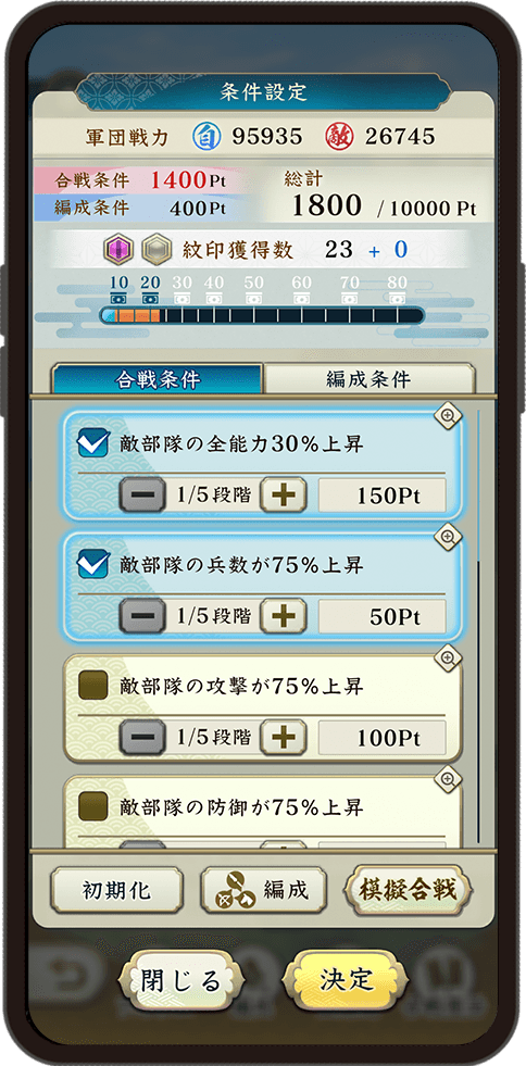 用兵指南では合戦のさまざまな条件を自分で設定することで、より多くの報酬を獲得できます。