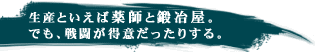 | 戦闘技能はあまり修得できないが、攻撃力・防御力は侍に引けを取らない。しかも、店で売られていない優れた武器・防具を生産できる。武器耐久度も回復できるので、お友達にしたいタイプ。 |