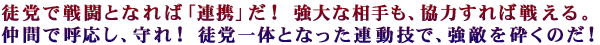 やっかいな「連携の阻止」だが、他の徒党と戦うときは積極的に阻止していこう。