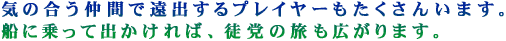 船を渡った先に思いを馳せて、今日もたくさんの徒党たちが乗り込むことでしょう。ガンバってくださいね!