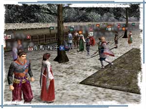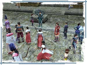 | こんどは掲示板で告知のあった市に参加してみましょう。開始時間になると、プレイヤーが続々と集まってきます。 |