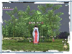 生産には材料と道具が必要。あとで道具は買うけど、材料はフィールドに出てすぐの竹やぶで伐採します。 他のプレイヤーが群れているので、すぐにわかりますね。
