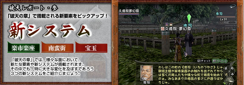 NPCにアイテムの売買を代行してもらう新システムが、“楽市楽座”です。