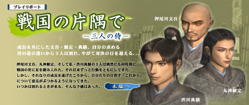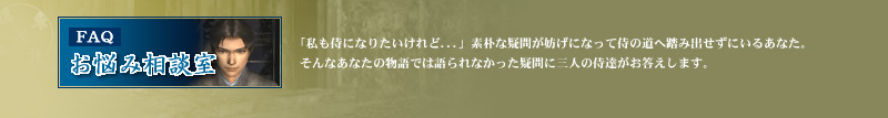 本編へ 侍の道 入門 侍の道 応用 武芸 侍の道 応用 軍学 侍の道 極意 対決、そして・・・ お悩み相談室