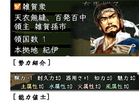 ![]() 技術的なことにも関心が高く、反抗心は強いが情熱的で、冒険を好む気質だって聞きました。 そうそう、当主の雑賀孫市さんはとっても人気が高いですね。この方を慕って雑賀衆に加わる方も多いと思います。 勢力ボーナスで、腕力と器用さがそれぞれ+1となります。とくに鍛冶屋さんは上位目録もそろっていますから、ぜひチェックしてください! |