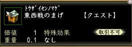 合戦では対人戦に、勝利すると《東西戦のまげ》を入手することができます。 また対人戦以外でも、一部のNPCが《東西戦のまげ》を落とすことがあります。