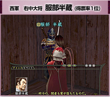 徳川家臣、服部半蔵正成でござる。どうか、お静まりを。 |