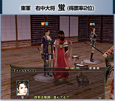 | 中備武将人気第2位は雑賀衆の蛍さん、何と女性です! 雑賀砦でインタビューに応じてくれましたよ。 |