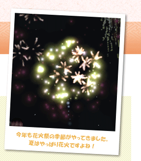 それに合わせて金、銀の花火を打ち上げるのもいいかもしれませんね。 |