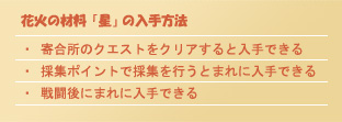 源さんに花火の材料である「星」の入手方法を尋ねると、いくつかの方法があるのを教えてもらえます。 |