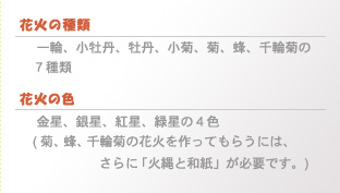 「星」の種類によって、完成する花火の種類が異なり、さらに色はランダムで決まるようです。