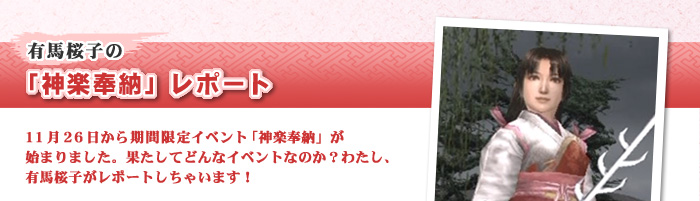 イベント期間中に手に入る「供物」によって様々な姿に変身して、「神楽巫女」に神楽を奉納します。そして所持アイテムの剣に力を宿らせて「七支刀」にし、神に捧げるのです。各城下町の神社にいる「神楽巫女」に話しかけるとイベントが開始されます。