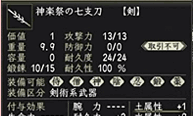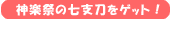 この供物を使って神楽巫女に話しかける、ということを7種類すると、「神楽祭の七支刀」が手に入ります。