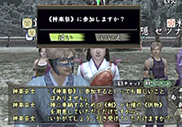 今度は手に入れた供物を使って変身してください。変身した状態で神楽巫女に話しかけてみましょう。