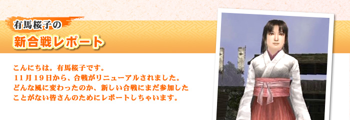 桜子:「今までの合戦と、ここが変わった、と感じる部分て何かありますか?」 お侍:「ああ、新しい要素の『疲労度』やね」 桜子:「疲労度?」 お侍:「せや。多分、桜子はんは今は表示されてへんやろうけど、戦ってみればわかりますわ。ちょっと一緒に戦うてみます?」 桜子:「お願いします」
