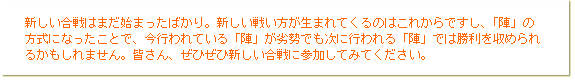 なるほど。今まで取材した内容を総合してみると、「要害攻略」が新しい合戦のポイントのようですね。