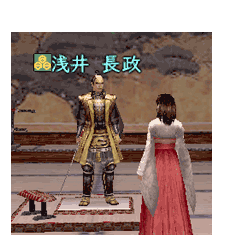 浅井家当主の「浅井長政」様です。早速話しかけちゃいました。