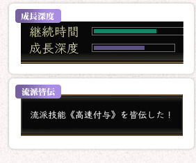 成長深度が深まると、流派技能を『皆伝』します。