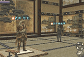 当然、総大将の信玄公がいるはずなのですが...あ、いましたいました。信玄公です。部屋の様子は通常の町のお城の中のようなんですが、よく見ると、みなさん、合戦用の格好をしています。見慣れた風景の中に、見慣れない格好の人がいると、なんだか不思議な気持ち。