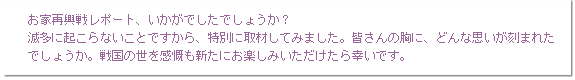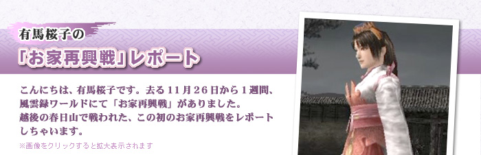このような戦いが1週間、全部で7陣続きましたが、いずれも上杉勢が圧勝。そして12月3日、合戦の勝利が確定。見事、上杉家は再興に成功しました。再興した春日山は上杉家の人々であふれかえっています。でも、隣接国が全て敵対状態になっている現状を考えると、本当に大事なのはこれからなんじゃないか、そんな感じがしました。お家再興にかけた情熱が、これからも続きますように。
