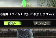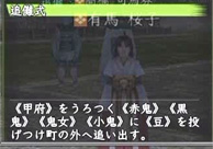 追儺式の説明の後に、参加するか・しないかを訊かれますので、 「参加する」と答えると、「追儺式」イベントの始まりです。 |