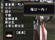 ![]() 追儺法師さんは鬼達を町の外に追い出すための道具、「豆」を10個くれます。豆は「節分豆」「粗末な節分豆」「上等な節分豆」の3種類あって、どれを何個もらえるかは、毎回違います。あ、残念ながら食べられませんので、レベルの数だけ食べる、なんてことはできないです。