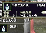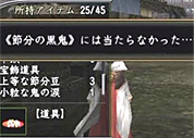 ![]() 豆が当たると、時々アイテムを手に入れることもあります。あは、文字通り、鬼の目にも涙ですね。大粒の涙とか、ほかにもあるんでしょうか? どんな効果があるんでしょうね。