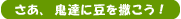 ![]() 豆をまくと、鬼はいやがって投げた方向と反対に逃げていきます。だから、うまく向きを変えさせながら、外へ