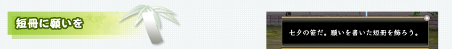 | 「蒼穹の紙片」を何枚か集めて「七夕仙女」に持っていくと、「青い短冊」に修繕してくれました。 |