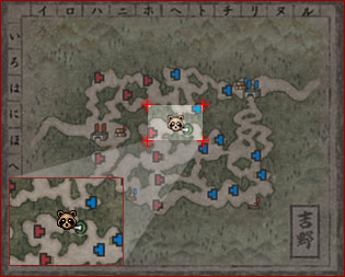 死亡した場合には、NPC“東軍狸(西軍狐)軍監”から配布されるアイテム“担架”を消費して、合戦場の対人戦禁止区域(門内)に飛ばされます。“担架”は3つもらえます。“担架”がない状態で死亡すると墓場に飛ばされます。 |