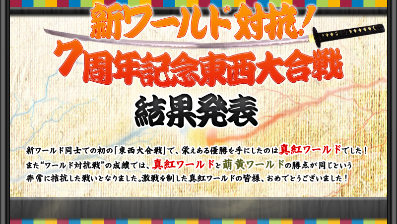 | NO. | ワールド名 | 勢力 | キャラクター名 | 獲得兵銭数 | ||