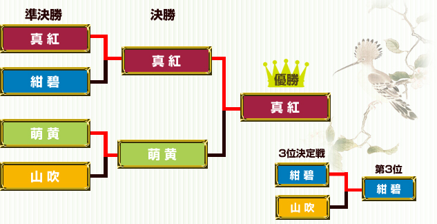 | 真紅 | 15 | 6 | 5 | 1 | 0 |