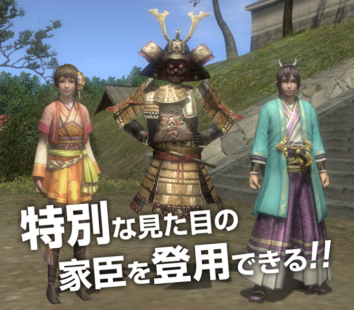 体験版から製品版へと移行された方には、森蘭丸、ねね、浮遊武者の中から1名を、家臣として登用できるアイテム《家臣登用券・壱》をプレゼントします。