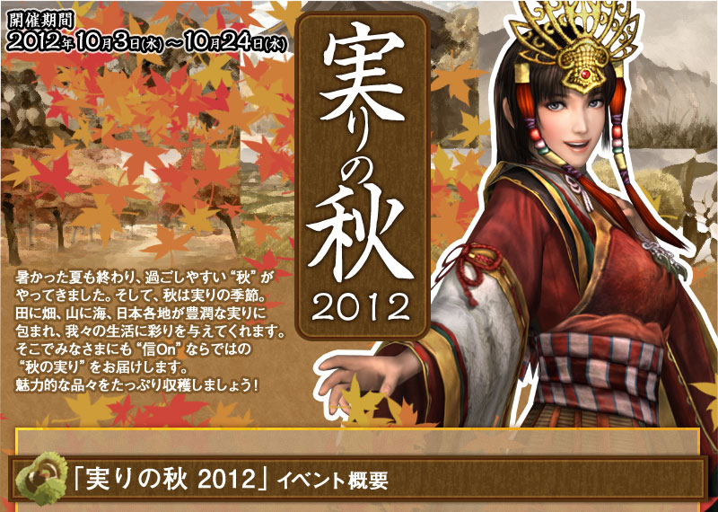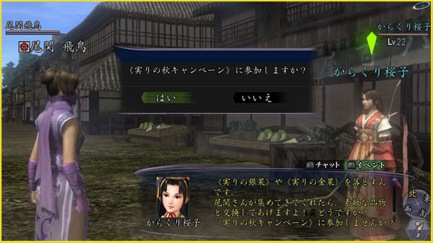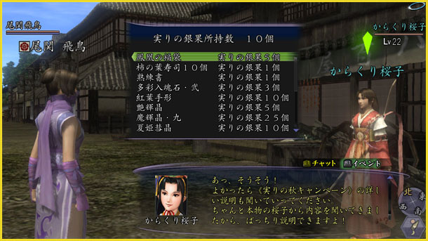 各街の入り口付近にいるNPC“からくり桜子”に話し掛けると、「実りの秋 2012」に参加できます。