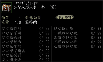 もらったひな人形や飾りを、それぞれ99個まで格納できる収納箱です。