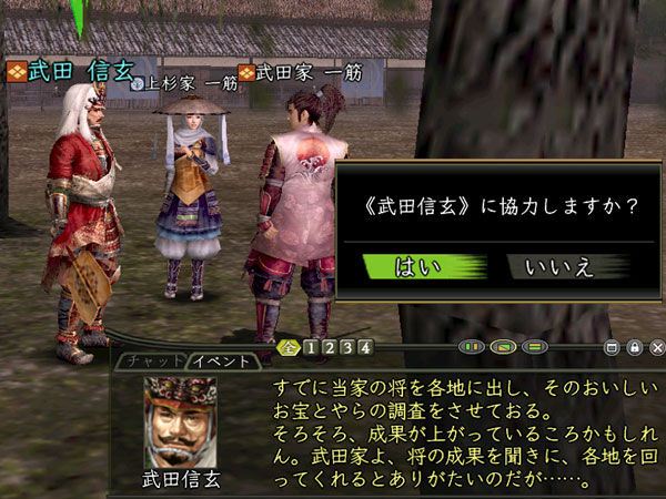 所属勢力によるイベント内容の違いはありません。武田家と敵対する勢力に所属している場合も、 イベントの参加、進行は問題なくできます。 |