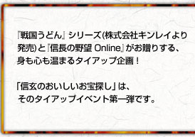 タイアップイベントには、株式会社キンレイより発売される「戦国うどん」シリーズをモチーフにした食材やうどんが