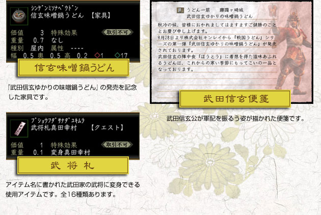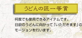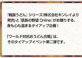 | 皆の者、大儀であった。 ワールド間で激しき戦いが行われた結果、見事、風雲録ワールドが第1位の座に輝いた。風雲録ワールドには特別な褒美を授けるので、“隠れ里”にいるわしの下を訪れるがよい。褒美を手に入れたら早速使ってみるのじゃ。いつでもおいしいうどんを楽しめようぞ。 最下位から2番目となった嵐世記ワールドにも、特別な賞を授けよう。 もちろんそのほかのワールドにも敢闘賞を贈るので、安心するがよい。 さて…。おぬしらの築き上げたうどん作りの知恵を目録にまとめておかねばならんな。そして、これからも“食による天下統一”に向けて力を貸してもらえるかの。 |