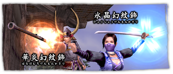 《上杉謙信人形》(家具) 《武田信玄人形》(家具) ![]() ![]() 《紫輪朧幻紋飾》、《流星幻紋飾》、《華炎幻紋飾》、《氷晶幻紋飾》