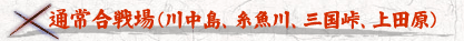 1.合戦終了時点で大名を落としている側の勝利 合戦は同時に5つの合戦場で開催されます。上記勝利条件に従って、個々の合戦場での勝敗が付きます。 ・合戦は川中島、糸魚川、三国峠、上田原、長篠の5ヶ所で行われます。長篠のみレベル45合戦場です。 ・レベル45未満のキャラクターが入場した場合、そのキャラクターはレベル45に引き上げられ、各能力も補正されます。